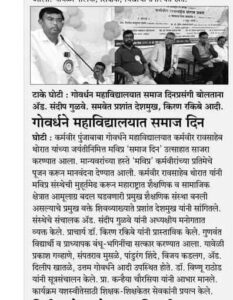 Maratha Vidya Prasarak Samaj’s Karmaveer Punjababa GoverdhaneArts, Commerce and Science CollegeIgatpuri, Nashik-422403, Maharashtra, INDIA. Affiliated to Savitribai Phule Pune University (ID. No. PU/NS/ASC/023/1981) | Junior College Index No. J.13.04.004 NAAC Re-Aceredited (“B” Grade with CGPA 2.52) |