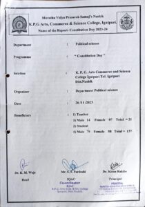 Maratha Vidya Prasarak Samaj’s Karmaveer Punjababa GoverdhaneArts, Commerce and Science CollegeIgatpuri, Nashik-422403, Maharashtra, INDIA. Affiliated to Savitribai Phule Pune University (ID. No. PU/NS/ASC/023/1981) | Junior College Index No. J.13.04.004 NAAC Re-Aceredited (“B” Grade with CGPA 2.52) |