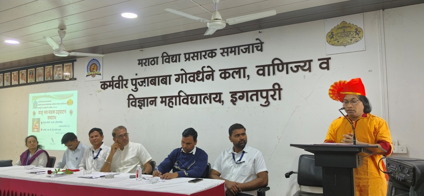 | Literary Association Inauguration 16 Jan.2024 Cheif Guest Mr.Anil Dixit , Prin.Dr.kiran Rakibe, Dr.Vishnu Rathod and faculty member. | 14th Sept.2023 Hindi day Celebration Chief Guest Dr.P.V.Kotme delivered the lecture –‘Importance of Hindi language and literature” | |||