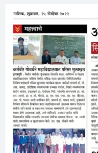 Maratha Vidya Prasarak Samaj’s Karmaveer Punjababa GoverdhaneArts, Commerce and Science CollegeIgatpuri, Nashik-422403, Maharashtra, INDIA. Affiliated to Savitribai Phule Pune University (ID. No. PU/NS/ASC/023/1981) | Junior College Index No. J.13.04.004 NAAC Re-Aceredited (“B” Grade with CGPA 2.52) |